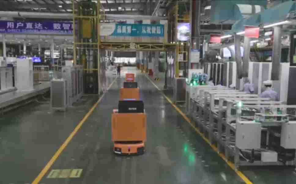 为车载冰箱物流配送打造的智能解决方案,,包含产中物流通过潜伏举升AMR搬运至线边,,,,产后成品物流智能仓储,,,流程包含产中物流智能齐套入库,,,线边安灯叫料AMR智能配送至线边,,,,成品入库、、出库,,,通过无人堆高车机器人,,,智能仓储管理替代人工作业管理,,,实现更高存储、、、、更高效率、、更具柔性化的解决方案。。